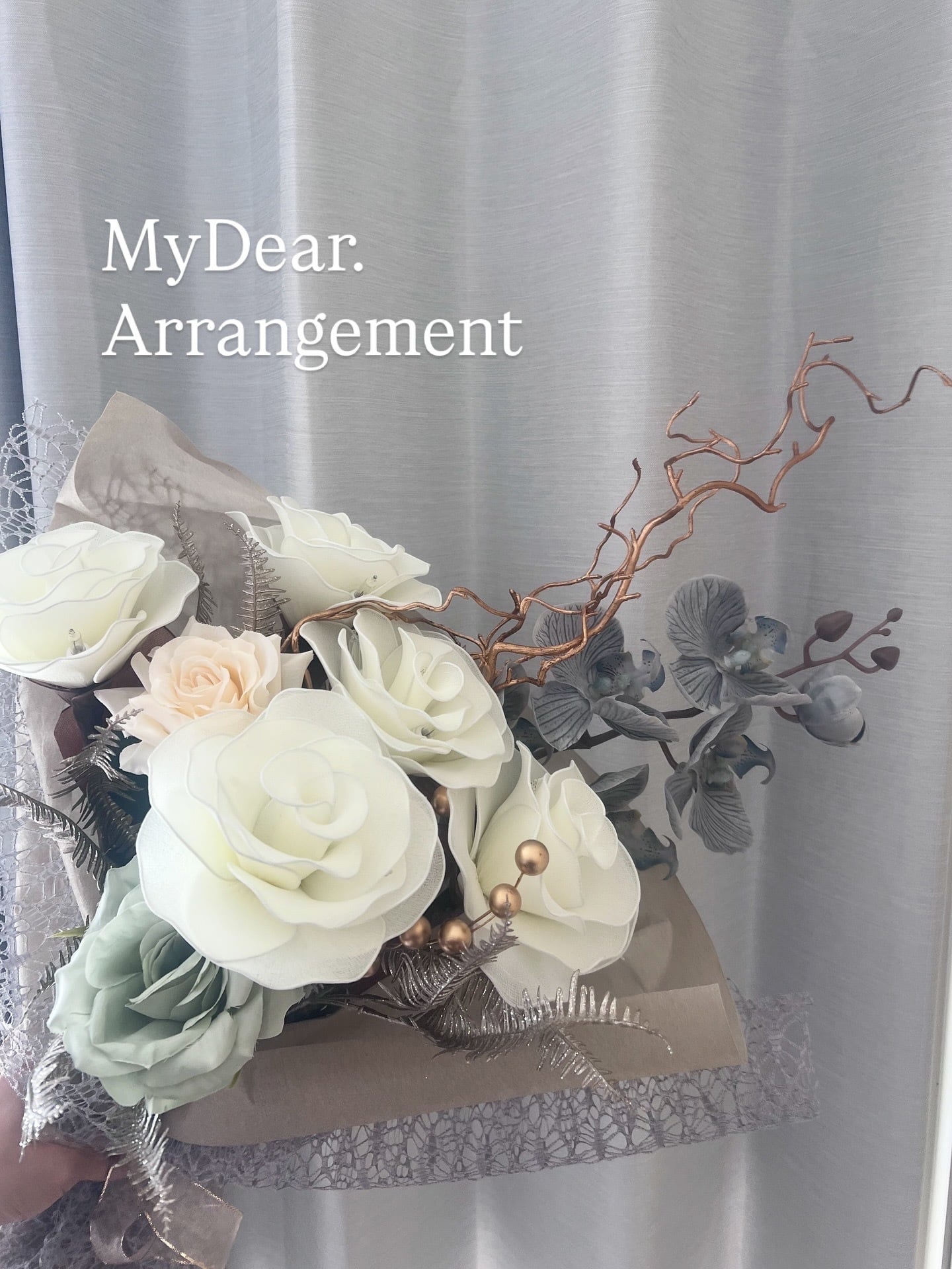 アーティフィシャルフラワーを組み合わせたブーケです。