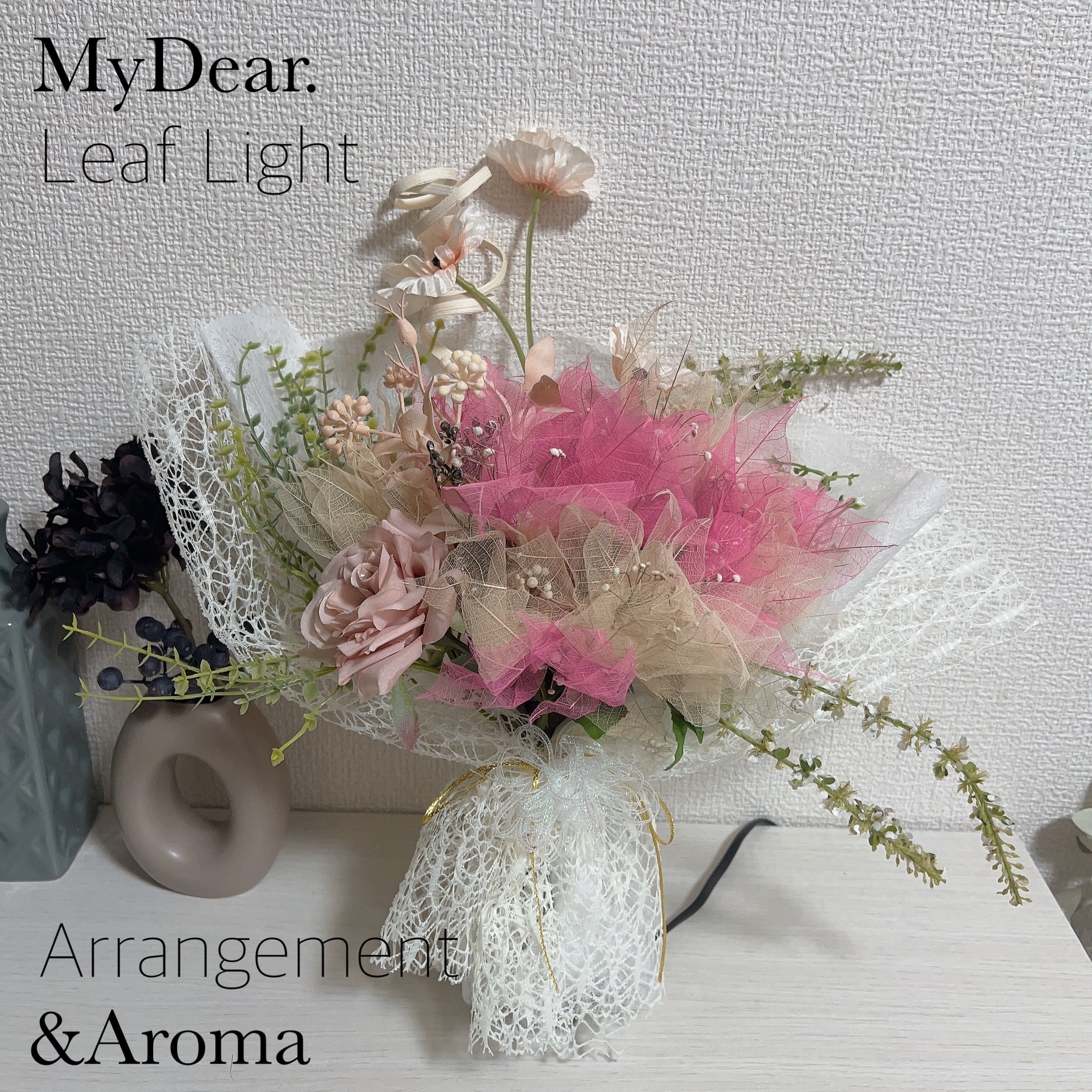 リーフライトピンクアレンジラッピングブーケ【アロマ付き】コンセントタイプ