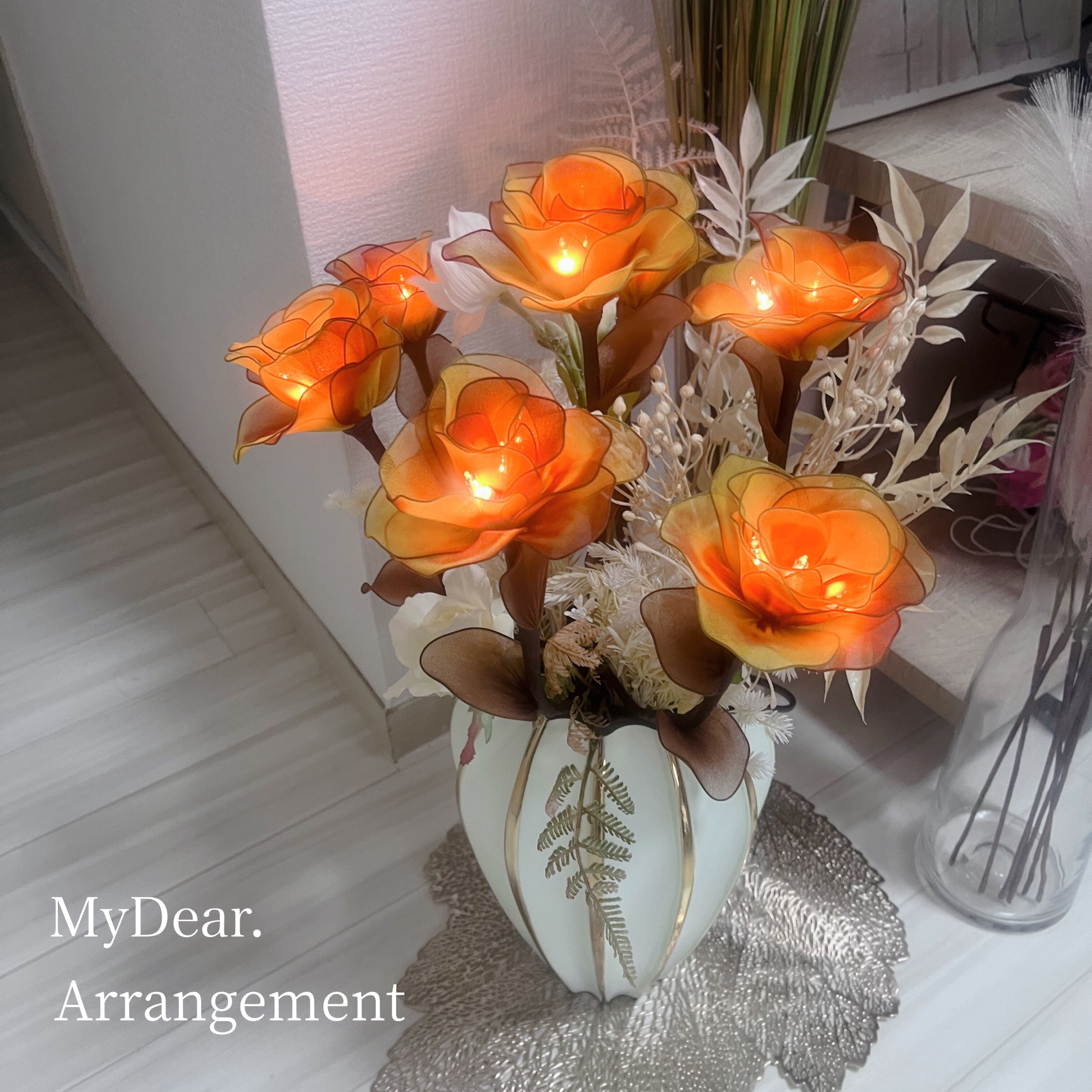ライトを付けて、やわらかく光る明かりに癒されたり、アートフラワーとしてお部屋に飾るのもおしゃれです。